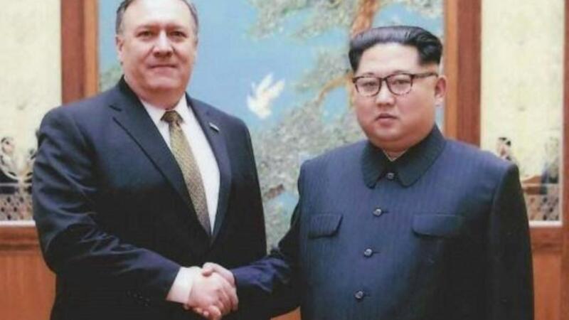 كيم جونغ اون (يمين) مع مايك بومبيو