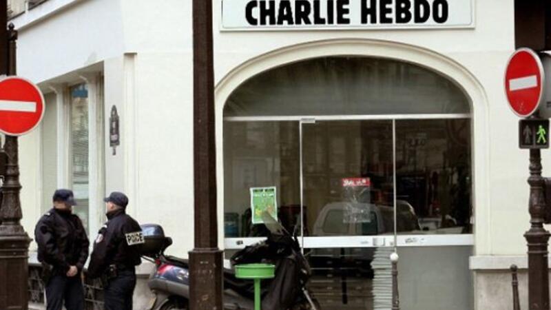 نشرت الصحيفة الفرنسية الساخرة "شارلي إيبدو" في ذكرى مرور عام على الهجوم المسلح عليها، كاريكاتيرا يصور عجوزا ملتحيا مسلحا برشاش كلاشنيكوف وثيابه ملوثة بالدماء، في إشارة إلى الله.
