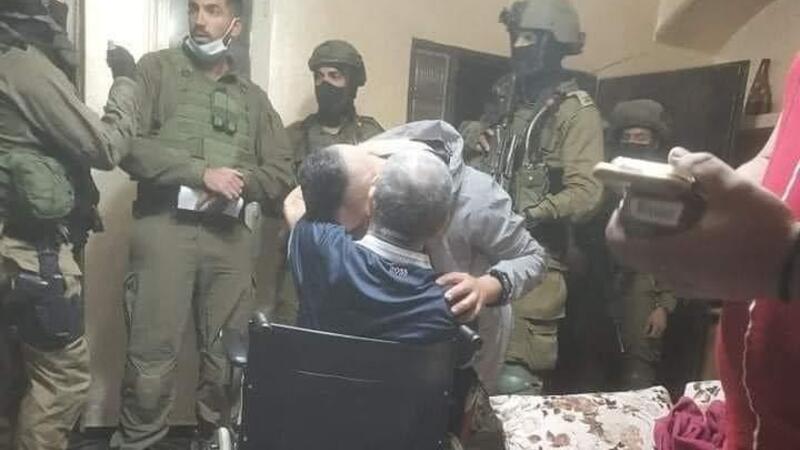 كما وثقت تقارير حقوقية لحظة وداع الشاب عهد يوسف الشوملي لوالده المقعد قبل اعتقاله من منزله في بيت ساحور، فجر اليوم، وداهمت قوات الاحتلال منول الرجل المقعد واقتادو نجله من بلدة بيت ساحور جنوب الضفة الغربية