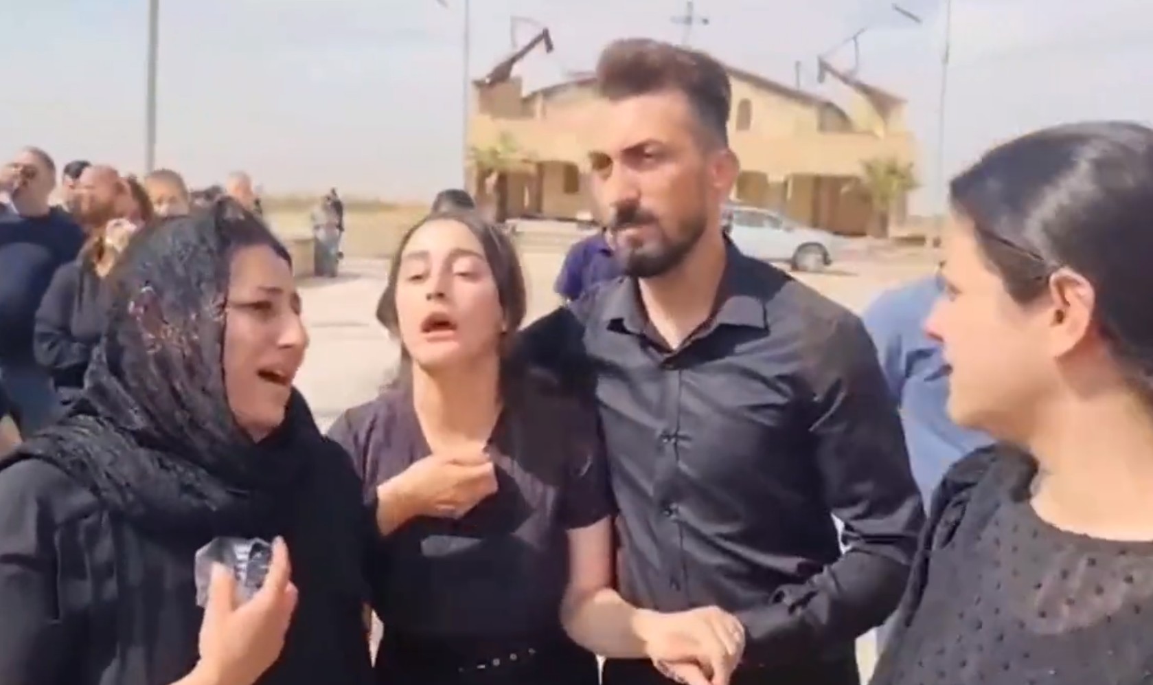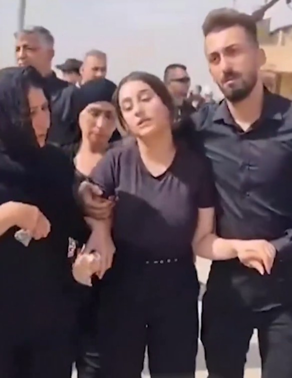 وظهرت عروس الحمدانية خلال جنازة والدها وقد انهارت تماما فيما كان عريسها يقف الى جانبها محاولا تهدئتها ومواساتها