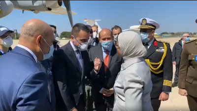 تداول نشطاء مواقع التواصل الاجتماعي في مصر، صورة لوزير الخارجية الإيطالي وهو يصافح أحد جنود الجيش المصري بعد إيصال مساعدات طبية من مصر إلى إيطاليا