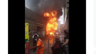 شاهد لحظة الانفجار: حريق كبير قرب محطة قطارات لندن