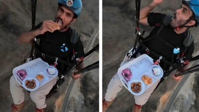 انتشرت على نطاق واسع في مواقع التواصل الاجتماعي لقطات فيديو تظهر المظلي السعودي عبدالله القحطاني وهو يخوض تجربة فريدة من نوعها تتعلق بـ "الإفطار في السماء".