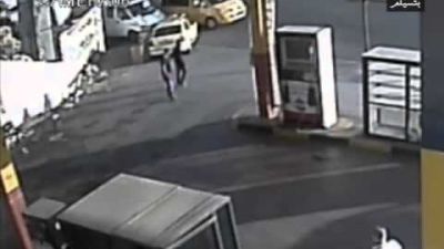 ولكن بحسب شريط الفيديو الذي وزعته منظمة بيتسيلم الحقوقية باستخدام لقطات من كاميرا المراقبة التي كانت موجودة في محطة وقود قريبة، يظهر شخص يركض باتجاه مركبة عسكرية ثم يقوم بالقاء الحجارة عليه.