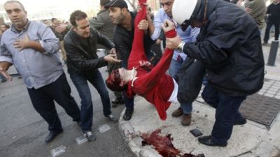 محاولة اسعاف احد ضحايا التفجير/أ.ف.ب