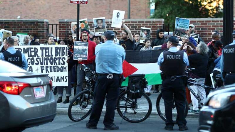 ونُظمت المظاهرة، مساء الثلاثاء بالتوقيت المحلي (صباح الأربعاء)، بمشاركة أكثر من 100 شخص أمام كنيس “أنشي أمت” في منطقة “ليك فيو”، أثناء زيارة السفير الإسرائيلي لدى واشنطن رون ديرمر، لمدينة شيكاغو.