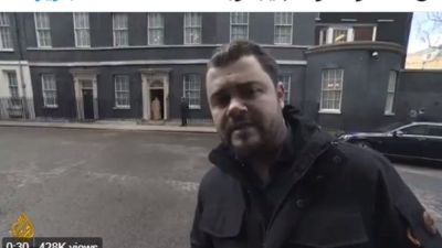 وجه الصحفي بقناة الجزيرة الإنجليزية في لندن، جمال الشيال، سؤالا لـ ولي العهد السعودي محمد بن سلمان عن الحرب على اليمن، خلال مسير الأخير للقاء رئيسة الوزراء البريطانية تيريزا ماي.