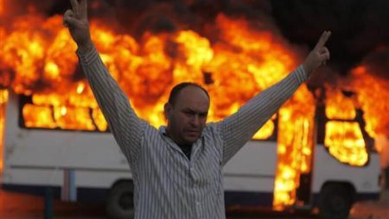 وتابع أن أربع حافلات إحداها صغيرة كانت استخدمت في نقل أعضاء في جماعة الإخوان من محافظات مختلفة إلى المنطقة للمشاركة في حماية مقر الجماعة أحرقت. وأظهرت لقطات بثها التلفزيون المصري سحابة من الدخان تتصاعد في سماء المنطقة.