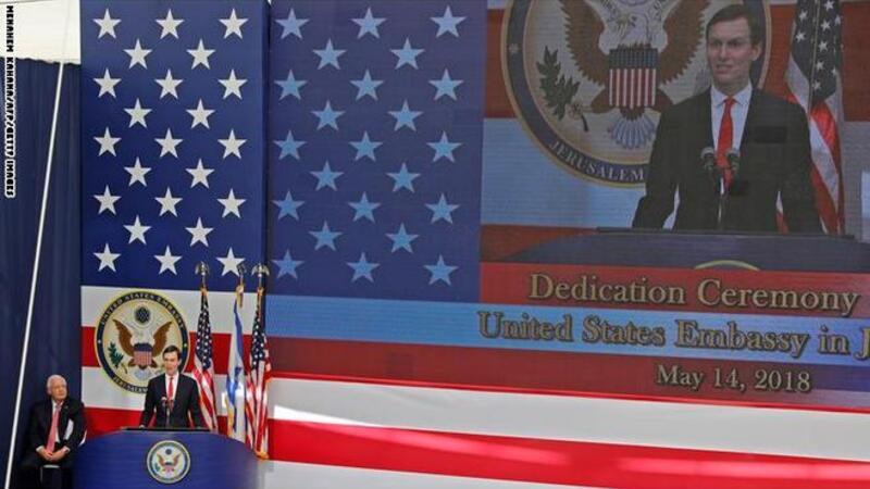 وقال صهر الرئيس الاميركي الذي كان يتحدث في حفل تدشين السفارة ان "التظاهرات الاستفزازية الأخيرة لا تهدف إلا إلى العنف، والمشاركون فيها هم جزء من المشكلة وليسوا جزءا من الحل."