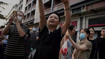 وبحسب مقطع فيديو نشر على مواقع التواصل الاجتماعي، طلب من عابرة وقفت لتأدية النشيد الوطني الصيني، سريعاً أن تلزم الصمت.