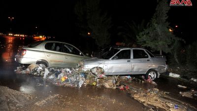 وشهدت مدينة دمشق وريفها أمطارا غزيرة مصحوبة بحبات برد كبيرة، أسفرت عن فيضانات واسعة وسيول جارفة، مخلفة أضرارا مادية كبيرة.