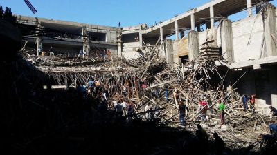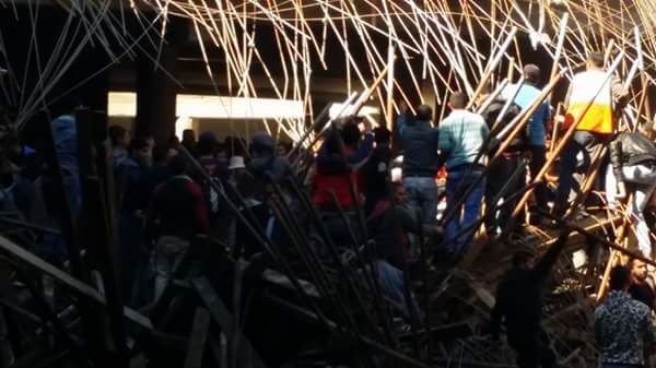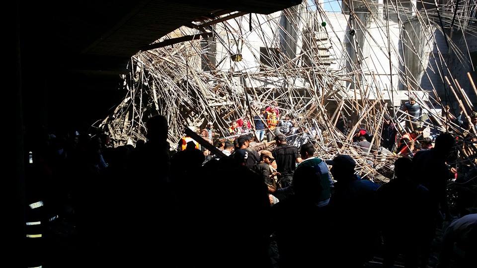 وبحسب شهود عيان، فإنّ عمال بناء كانوا متواجدين على سقف المبنى ويصبون الأسمنت بالطابق الأخير العلوي في اللحظة التي بدأ فيها المبنى فجأة بالانهيار وتطاير كل شيء حوله .