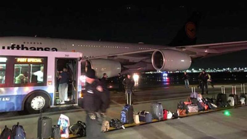 وقال ستيف كولمان المتحدث باسم هيئة موانئ نيويورك ونيوجيرزي إن الطائرة المتجهة من هيوستن إلى فرانكفورت هبطت في منطقة نائية بمطار جون كنيدي الدولي في حوالي الساعة الثامنة والنصف مساء بالتوقيت المحلي.