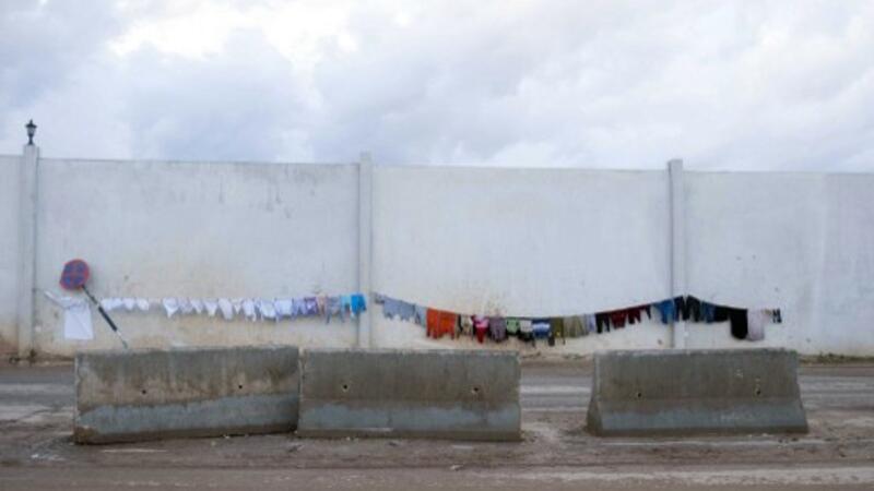 مشردون يعلقون ملابسهم لتجف في مخيم باب السلام بالقرب من حلب/أ.ف.ب
