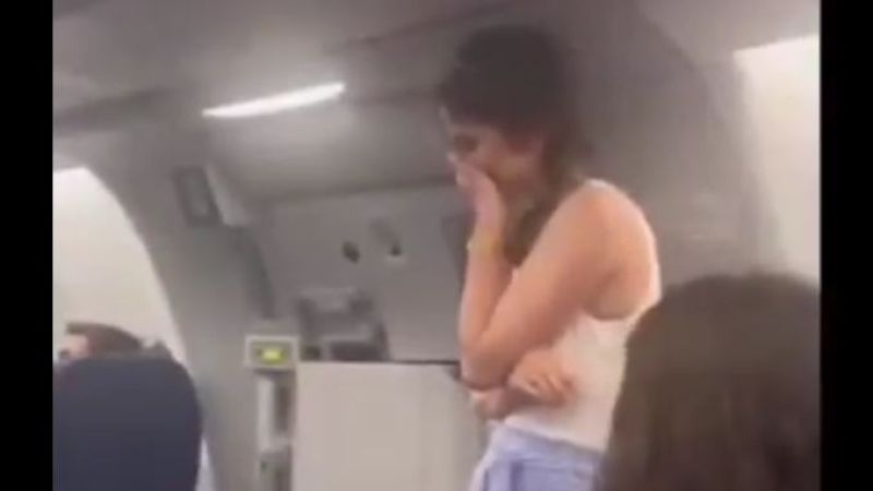 ومن داخل قمرة القيادة نادى كابتن الطائرة عبر السماعات داخل الطائرة على حبيبته معبراً لها عن أمنيته بأن تكون شريكة حياته، ثم طلب الزواج منها. حيث انفعلت وتوجهت الى قمرة القيادة فيما كان الكابتن يهم بالخروج حاملا خاتم الخطبة