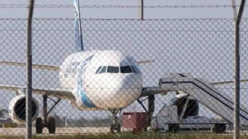 وقالت وزارة الطيران المدني المصرية في بيان "أبلغ قائدها الطيار عمر الجمل عن وجود تهديد من أحد الركاب بوجود حزام ناسف في حوزته وأجبر قائدها على النزول في مطار لارناكا."