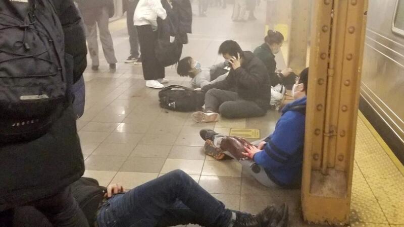 At least 13 people were injured, the station was filled with smoke. Police are looking for the attacker, and the shooter was reportedly wearing a gas mask. #BreakingNews #NewYork pic.twitter.com/pXiJTwk3Eq