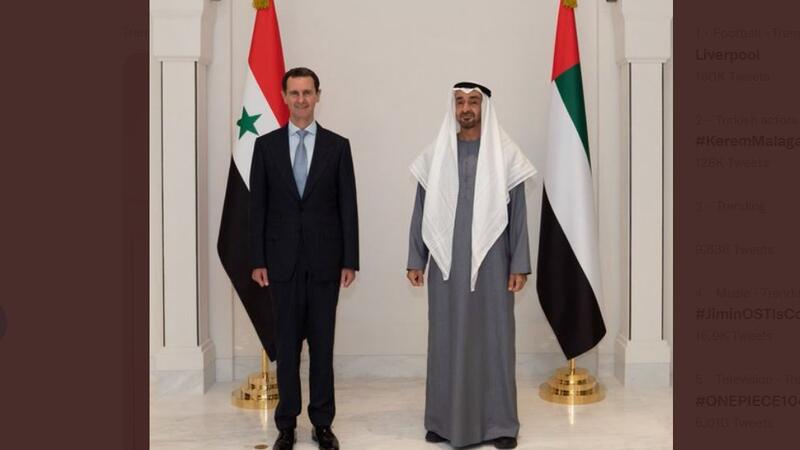 لاول مرة بشكل علني يقوم الرئيس السوري بشار الاسد بزيارة الى خارج سورية منذ اندلاع الثورة ضد نظامه عام 2011 ، حيث وصل الى دولة الامارات العربية المتحدة التقى خلالها الشيخ محمد بن راشد آل مكتوم نائب رئيس دولة الإمارات حاكم دبي، والشيخ محمد بن زايد آل نهيان ولي عهد أبوظبي.