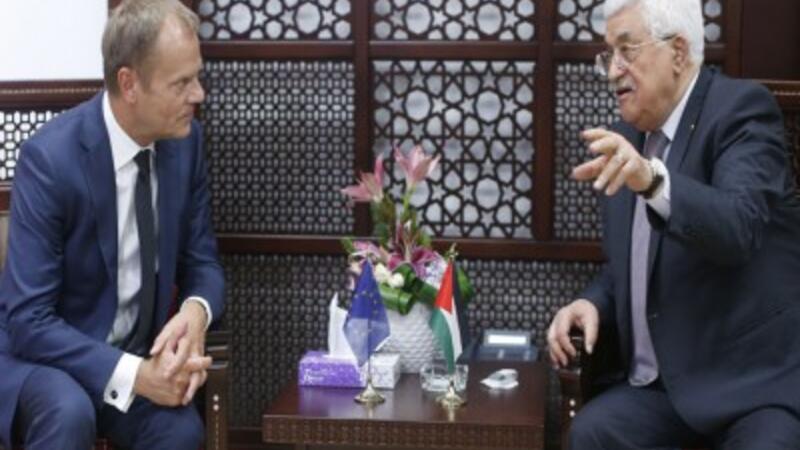 الرئيس عباس خلال لقائه رئيس المجلس الأوروبي، دونالد توسك
