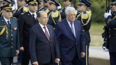 ووصل عباس الخميس الى لبنان. وقال في مؤتمر صحافي مشترك مع عون في القصر الجمهوري إن "إسرائيل لا زالت تصر على مواصلة احتلالها لأرضنا، وإبقاء شعبنا في سجن كبير، وهو ما لن نقبله وسنواصل العمل بالطرق السياسية والدبلوماسية واستخدام أدوات القانون الدولي وحشد الدعم الدولي الثنائي والمتعدد".