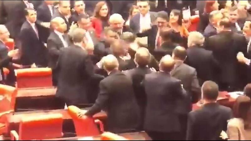 وتخلل الاشتباك الجماعي بين النواب مشادات وانتقادات للرئيس رجب طيب أردوغان.