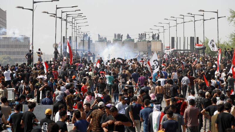 وكان آلاف المتظاهرين تجمعوا في بغداد لإحياء الذكرى الثالثة للانتفاضة الكبرى وغير المسبوقة ضد السلطة وفساد النخبة الحاكمة وسوء إدارة الخدمات العامة في بلد يشهد شللا سياسيا كاملا.