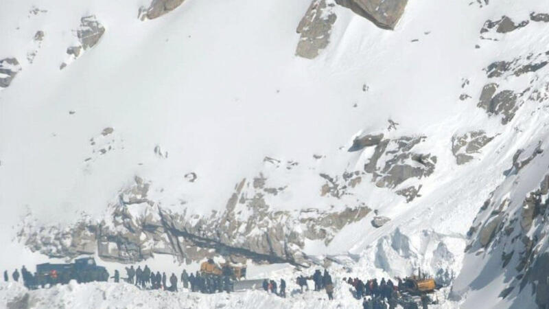 وقال مسؤولان إن العديد من القرويين تقطعت بهم السبل وسط الانهيارات الجليدية في منطقة وادي نيلوم بعد أمطار غزيرة تسببت أيضا في انهيارات أرضية.