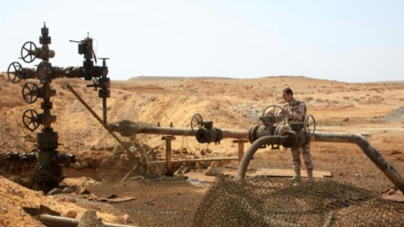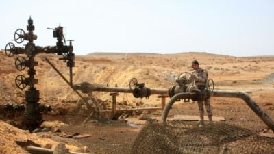 عنصر من القوات النظامية السورية عند بئر نفقط في منطقة تدمر