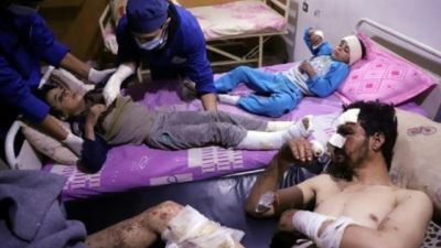 وأفاد طبيب عاين المصابين في المشفى ان معظمهم يعاني حالات تهيج في العيون وضيق تنفس، مرجحاً ان تكون ناجمة عن تنشق غاز الكلور.