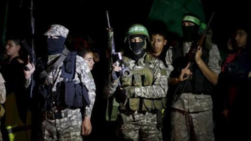 مسلحون من حماس أثناء مسيرة في مدينة غزة