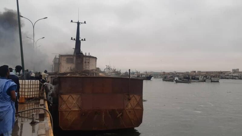 غرقت سفينة تابعة لمعهد بحوث المحيطات والصيد الحكومي فيما كانت راسية على شاطئ مدينة نواذيبو شمالي موريتانيا .