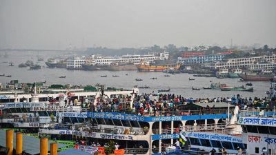 وأوضحت إدارة وسائل النقل البحرية المحلية أن العبارة، التي انطلقت من مدينة نارايانغاج، انقلبت في نهر شيتالاخسيا قرب العاصمة دكا بعد اصطدام جانبها الخلفي مع سفينة شحن في حوالي الساعة 18:00 بالتوقيت المحلي.
