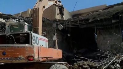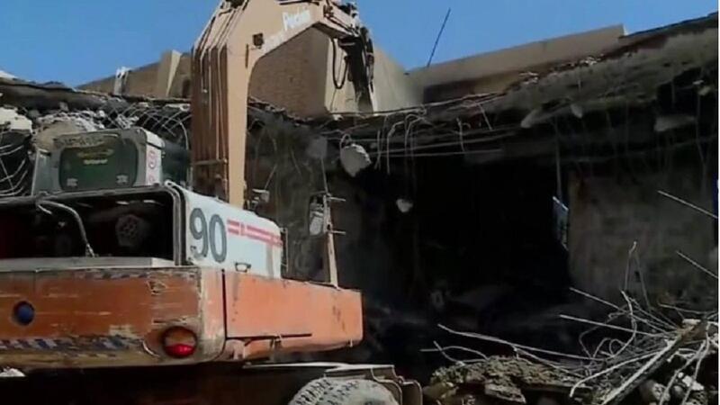 آليات كبيرة هدمت مقر الحزب في منطقة الكرادة ببغداد