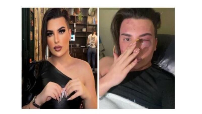 ووفق مقطع فيديو للمتحول الجنسي فان اظافره تضررت وعينية تورمت  والمح الى انه اشتكى على الشبان عند مراكز الامن ووعد المشاهدين بالعودة الى جماله ، وقال ان الشخص الذي قام بضربه هو مختل عقلي