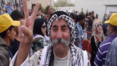 ورفع المشاركون صورا لعرفات، وللرئيس الحالي محمود عباس، وأعلاما فلسطينية، ورايات حركة التحرير الوطني الفلسطيني “فتح”.