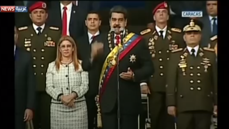 وأظهر التلفزيون الحكومي مساء السبت الزعيم الاشتراكي الذي بدت عليه الدهشة مما بدا أنه انفجار بينما كان يلقي كلمة في العاصمة كراكاس. وبعد لحظات، أظهرت لقطات مئات الجنود الذين يقفون في تشكيلات وهم يحاولون الهرب من المكان.