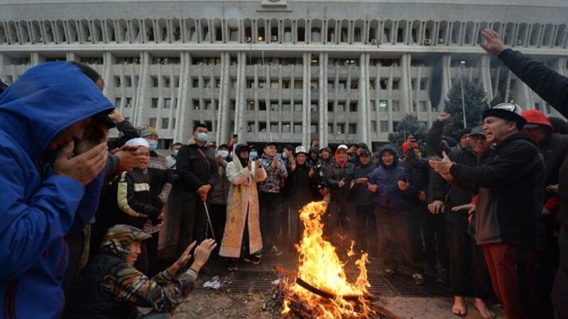 وتمكن متظاهرون أيضا من إطلاق سراح رئيس البلاد السابق، ألمازبيك أتامباييف، ومسؤولين آخرين، من مركز احتجاز تابع للجنة الأمن القومي.