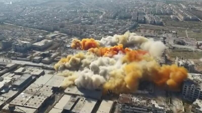 فيديو: الجيش الحر يفجر مبنى معامل الدفاع بحلب بحرفية