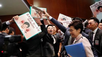 أجبرت رئيسة السلطة التنفيذية في هونغ كونغ كاري لام الأربعاء على التوقف عن إلقاء خطابها حول السياسة العامة بعد اعتراضات من النواب ووسط مشهد من الفوضى في البرلمان المحلي.