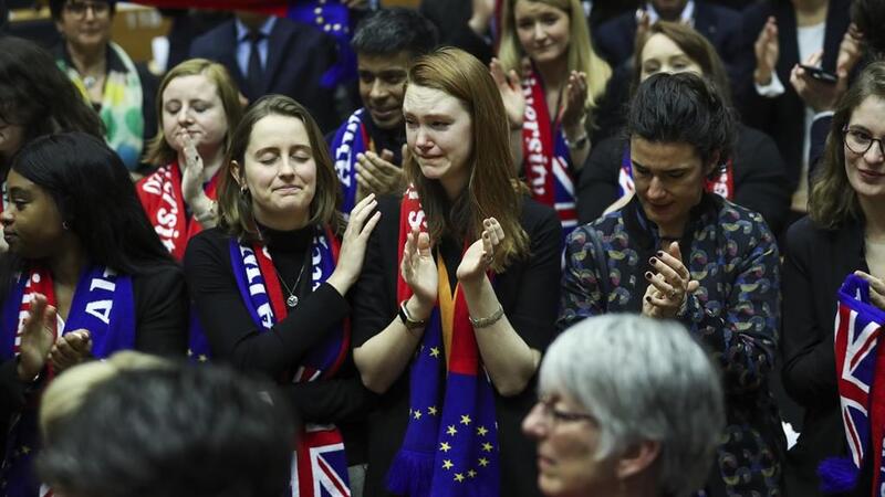 شهدت جلسة البرلمان الأوروبي لحظات مؤثرة، الأربعاء، بعد مصادقة أغلبية أعضائه على اتفاق خروج بريطانيا من الاتحاد “بريكست”.