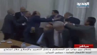 كاد عضوان في البرلمان اللبناني يتبادلان اللكمات خلال جلسة بثها التلفزيون على الهواء الاثنين وتدافعا وصاحا في وجه بعضهما البعض في مثال حي على الصراع السياسي الذي أصاب عملية صنع القرار بالشلل وأشعل السخط العام.
