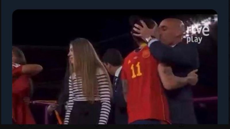 طبع رئيس الاتحاد الإسباني لكرة القدم لويس روبياليس على شفاه نجمة منتخب سيدات إسبانيا جيني هيرموسو بشكل عنيف بعد التتويج بلقب كأس العالم 2023 الامر الذي اثار الكثير من الجدل.