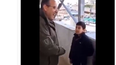 رفض الطفل الفلسطيني كريم إياد أبو حاتوه مصافحة ضابط اسرائيلي على المعبر اثناء دخوله القدس المحتلة