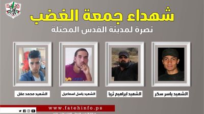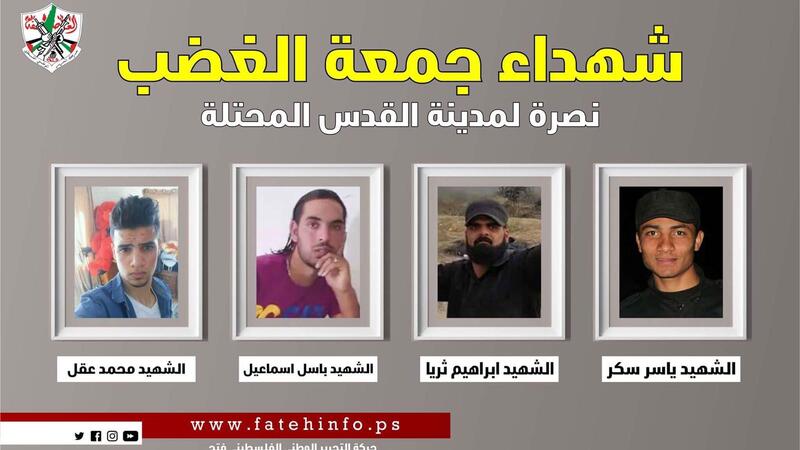 واعلن عن استشهاد محمد أمين عقل في العشرينيات، بيت أولا- الخليل الذي نفذ عملية طعن واصيب على اثرها بجروح خطيرة ، باسل مصطفى محمد ابراهيم 29 عاما، عناتا- القدس، ياسر سكر 23 عاما، قطاع غزة، إبراهيم أبو ثريا 29 عاما، قطاع غزة وهو من ذوي الاحتياجات الخاصة وسقط برصاصة قناص في الرأس