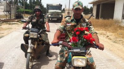 جنود من الجيش النظامي السوري يجوبون شوارع قرية البويضة/أ.ف.ب