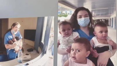 الصورة للمرضة التي انقذت الاطفال التوائم وقد بلغو عاما اليوم