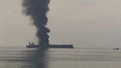 انفجار في ناقلة نفط بريطانية بميناء #جدة نتيجة إصابتها من مصدر خارجي