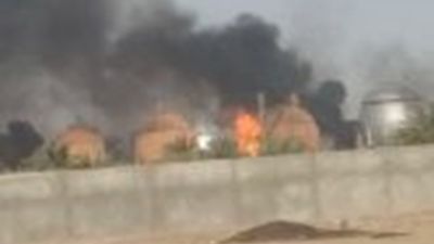 النيران تتصاعد في منشأة غاز التاجي شمال بغداد - تويتر