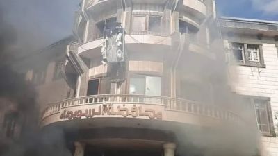 ومن جانبها، اعلنت وزارة الداخلية السورية مقتل عنصر أمن خلال التصدي للمحتجين الذين اقتحموا مبنى قيادة الشرطة المجاور لمبنى المحافظة.