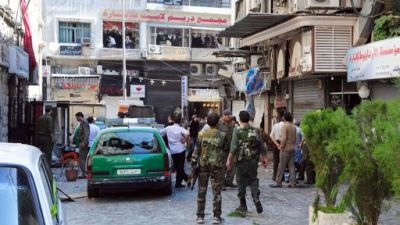 قتل 14 شخصا على الاقل وجرح عشرات اخرون الثلاثاء، في انفجارين استهدفا على ما يبدو مركزا للشرطة في ساحة المرجة دمشق، فيما قصفت القوات النظامية مطار منغ العسكري في حلب (شمال) بعدما حقق مقاتلو المعارضة تقدما في داخله.